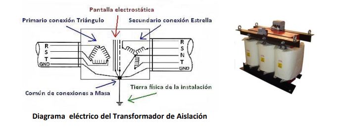 Para ello, cuenta con un Transformador de Aislación (en configuración triángulo-estrella), que genera un
