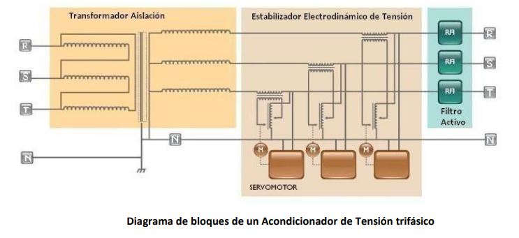 En estos Acondicionadores de Tensión, la regulación de tensión se realiza totalmente con componentes